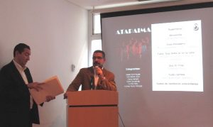 El Prof. Alexander Albarrán Torres director de la federación lleva a cabo las palabras de agradecimiento y reconocimiento al equipo del Centro Cultural Padre Carlos Guillermo Plaza s.j. de la UCAB, a su directora Mabel Calderín, y su coordinadora Yelitza Méndez.