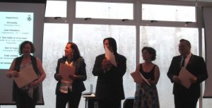 fevecoro-036A continuación se prepara para entrar la segunda presentación, se trata del grupo Vocal Femenino Atapaima, ensamble con sonoridad propia formada por seis artistas venezolanas dedicadas a la música popular criolla y latinoamericana por más de una década en Caracas, grupo conformado por Isabel Domínguez, Ana Cecilia Loyo, Diana Herrera, Iliana Goncalvez, Cyntia Irady y Andrea Paola Márquez, estas hermosas damas ponen a todo el mundo a bailar, incluida su servidora, dentro del poco espacio que me da mi asiento no puedo evitar bailar con este contagioso y delicioso ritmo, el sonido de nuestras raíces nos envuelve a todos y la magia de los instrumentos de percusión nos hace mover los pies, debemos de contener las ganas de levantarnos dentro del auditorio, creo que más de uno esperaba ser el segundo en ponerse de pie. Tras una muy merecida ovación, se despiden las muchachas con sus coloridas faldas para dejarle el espacio en el escenario a la tercera y última agrupación.