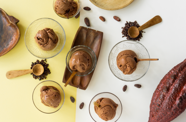 El resultado son cuatro sorbetes, es decir elaborados sin añadido de lácteos o materia grasa, que quieren mostrar al consumidor todas las características organolépticas de cada una de las cuatro barras seleccionadas con la curaduría de la periodista especializada en gastronomía Rosanna Di Turi.