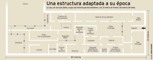 Pocas áreas de la casa contienen piezas o partes de su estructura original. En el recorrido, justo en frente a la cocina, se ubica una pared de unos 30 centímetros de ancho y dos metros de alto, que contiene piedras originales de la época y se conserva a la perfección desde la construcción de la casa hace más de 500 años. Lo mismo sucede con las escaleras que dan acceso al área de lavandería, que ha sido completamente remodelado.