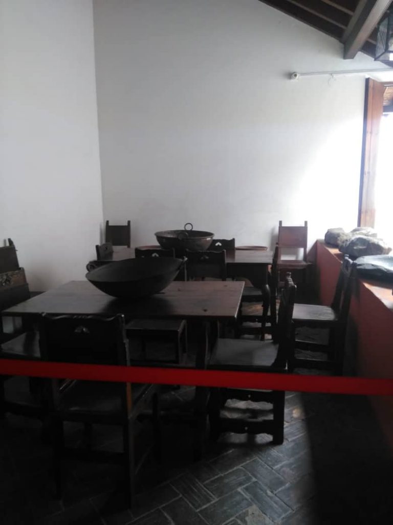 Más adelante se ubica el segundo comedor donde se servían los alimentos básicos y no se realizaban comidas formales o elegantes. También se observa una mesa de madera y muebles traídos de distintas partes del mundo. Habitualmente las personas del servicio no podían disfrutar de sus comidas en este lugar.