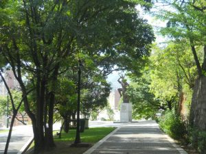 Al fondo de la caminería una estatua del cacique Guaicaipuro