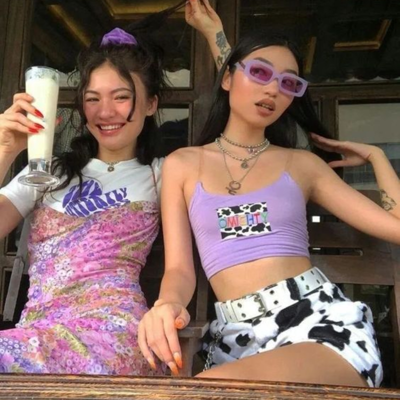 Las mujeres también utilizaban tendencias inspiradas en géneros musicales. La moda era ir escotadas enseñando la barriga y los brazos. La tendencia más vista era la de los vestidos cortos de estampados florales que llegaron después de la época calurosa y se quedaron por la comodidad y la frescura que generaban. Los accesorios fueron una revolución impresionante ya que llegaron las pashminas, zarcillos grandes y largos, pulseras enormes, lentes de sol oscuros, carteras grandes, zapatos de plataformas.