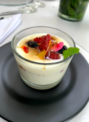 Luego, pasamos al brunch y ¡qué delicia! Empezamos con el coctel de bienvenida, una mimosa muy refrescante mientras esperábamos el primer plato.
