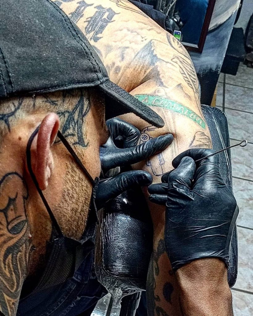 Aprendí prácticamente solo, para ese entonces había muy poca información, al momento de comenzar con la máquina no me sentía tan cómodo y mi amigo me comentó de esta técnica que la hacía un tatuador que se llama @inspector_handpoke de España, Murcia que la probara a ver qué tal me sentía, y la verdad al momento sentí que hice «clic» y al no tener nada de información pues me tocó aprender solo, ensayo y error. Tengo al menos 50 o más tatuajes, que me hice yo mismo.