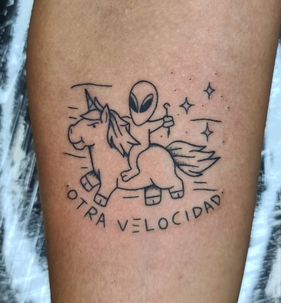 «Tengo 34 años y desde pequeño me ha gustado dibujar y hacer volar mi imaginación. Hago graffiti desde el liceo, me gusta la cocina, no veo TV, solo escucho música y tengo un hijo de 15 años. Comencé a estudiar un par de carreras pero no las terminé y me dediqué a ser entrenador personal, he practicado deportes casi toda mi vida y me fui a vivir a España cuando tenía 30 años, dado a que migré y solicité asilo, se me hizo difícil conseguir empleos de entrenador y me dediqué a la cocina ya que se bastante del tema, luego fue cuando comencé a tatuar, en Madrid, luego me fui a vivir a Barcelona donde mi carrera como tatuador tuvo mucho más movimiento, antes de venirme a Venezuela ya estaba tatuando toda la semana y ya había dejado hasta mi trabajo de cocinero para dedicarme de lleno al tatuaje. Este año 2021 en enero decidí regresar a Venezuela con mi familia y abrir mi estudio privado @lagaritastudio el cual tiene un montón de proyectos nuevos. Uno de ellos es el primer curso de iniciación al tatuaje en técnica handpoke. Esto se realizará en un mes aproximadamente. Aún no tengo fecha clara pero ya se está organizando todo. Este año decidí viajar a 2 países para dar este curso y darme a conocer y la verdad para ser la primera vez, tuve un buen recibimiento, tanto en Colombia como en México.