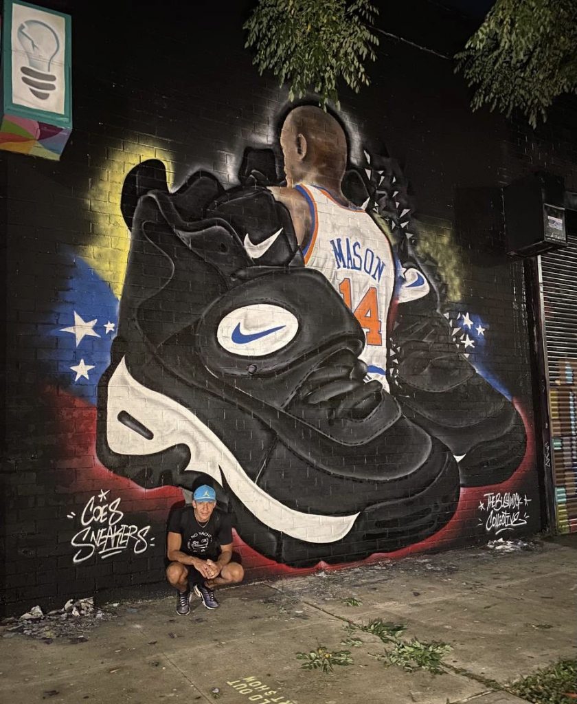Natanael Marrero (Coessneakers) nace en Caracas, Venezuela, reside y trabaja en Miami, Estados Unidos. Artista visual, artista de graffiti y tatuador. Miembro activo de los crews de graffiti Caribes Tribu y CMS. Se ha formado de manera autodidacta, como pintor desarrolla una obra que parte del estudio de la cultura underground sneaker iniciada a finales de la década de los 70 en Nueva York dentro del movimiento de los B-Boy del Hip-Hop, que luego se consolida a partir de 1985 cuando la marca Nike y el deportista Michael Jordan se unen para sacar al mercado los zapatos Air Jordan. Su investigación indaga específicamente en cómo este fenómeno los “Sneakers” empezaron a trascender culturas, razas, clases y nacionalidades, haciendo parte fundamental de la identidad de los usuarios y cómo esta tendencia se extendió en Caracas, Venezuela, mutando e influenciando códigos de vestimenta y conducta, en los barrios marginados y la clase media; para estos sectores este tipo de zapatos pasó a ser símbolo de status social, desatando una serie de reacciones entre coleccionismo y violencia (esta última en las clases de estrato social más bajo), tras el afán de conseguirlos.