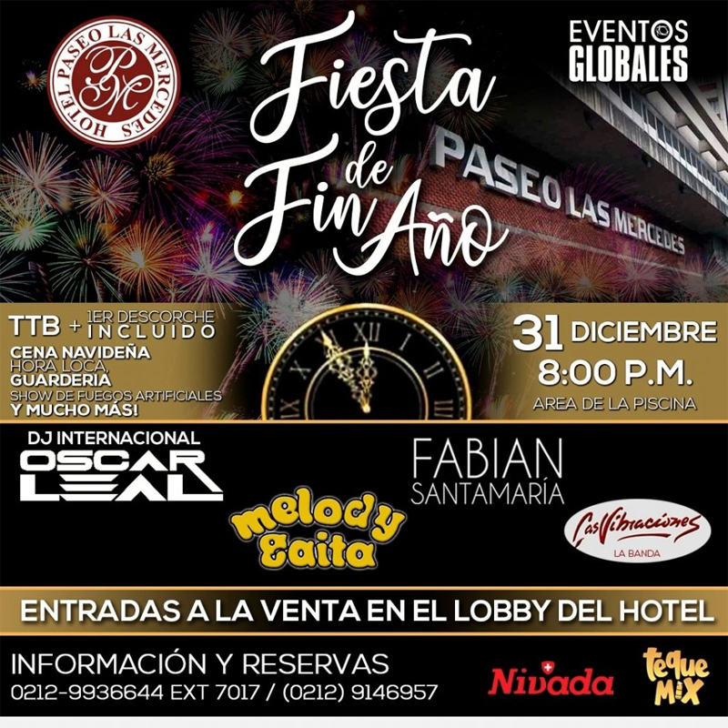 El Intercontinental Tamanaco ofrece para el 31 una cena navideña con un menú de entrada, plato principal y postre. Con un Dj podrán bailar y disfrutar toda la noche además de un saxofonista, hora loca con cotillón, las 12 uvas para los deseos y más. Asimismo, también ofrecen precios de promoción para quienes deseen alojarse en el hotel y amanecer para el 1ero de enero disfrutar de la piscina y el brunch.