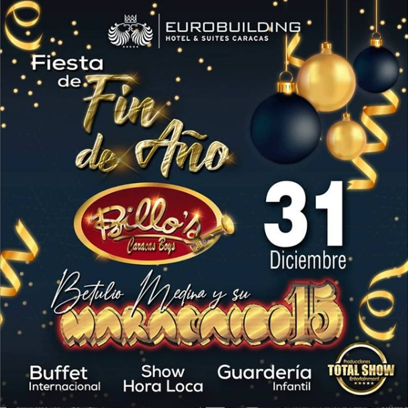 Por supuesto que el Eurobuilding no se queda atrás. Con su fiesta animada y con música de Betulio Medina y Maracaibo 15 recibirán el 2022. Tendrán un buffet navideño y con más opciones, el show de la hora loca, guardería para los pequeños de la casa y más.