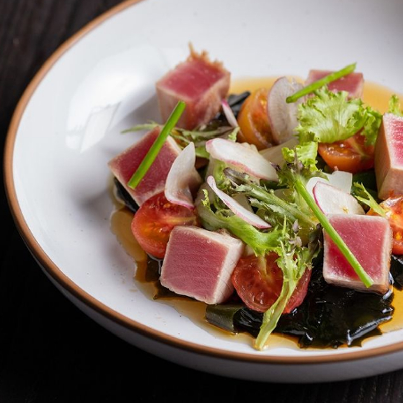 Todo tiene que ver con las influencias del concepto en Paralelo 34°, así es como el logotipo refleja la silueta de un pájaro. La misma es el ave nacional en Uruguay, el tero tero, una especia muy territorial que se comporta como un guardián elegante. Los platos son preparados por el chef venezolano Gonzalo Alvarez, quien tiene una larga trayectoria en España y Japón en distintos restaurantes de alta categoría.