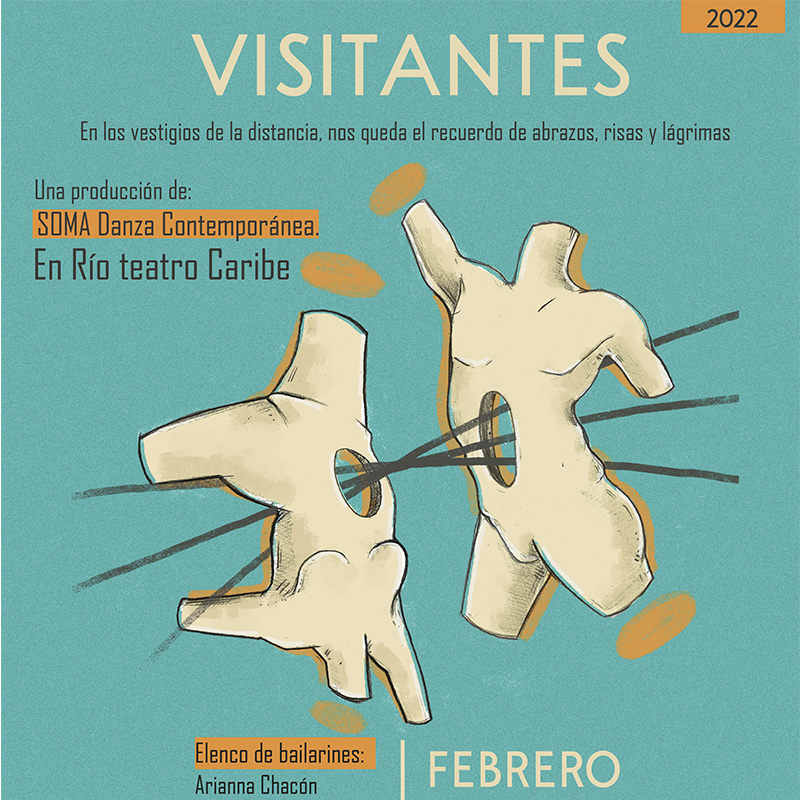 Esta pieza teatral, Visitantes es un espectáculo de la compañía SOMA danza contemporánea. La dirección estuvo a cargo de Roselbi García, los actores son los noveles bailarines Arianna Chacón, María Elena Sánchez, Sebastián Luy y Roselbi García. La historia transcurre en que estos jóvenes buscan en los recuerdos, la distancia física y la época pandémica lo que nos ha hecho mutar como personas. Para así danzar y llevar a escena la esencia única que nos hace humanos. Creada a partir de la distancia física dado que Roselbi se cuestiona cómo esto nos aleja de lo que nos hace ser. Es una realidad en la que aún estamos sumergidos por la pandemia, sin embargo, la distancia que nos han obligado a tomar del mundo exterior nos ha hecho mutar. La necesidad de un abrazo, risas y lágrimas se han convertido en acciones distintas.
