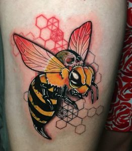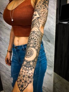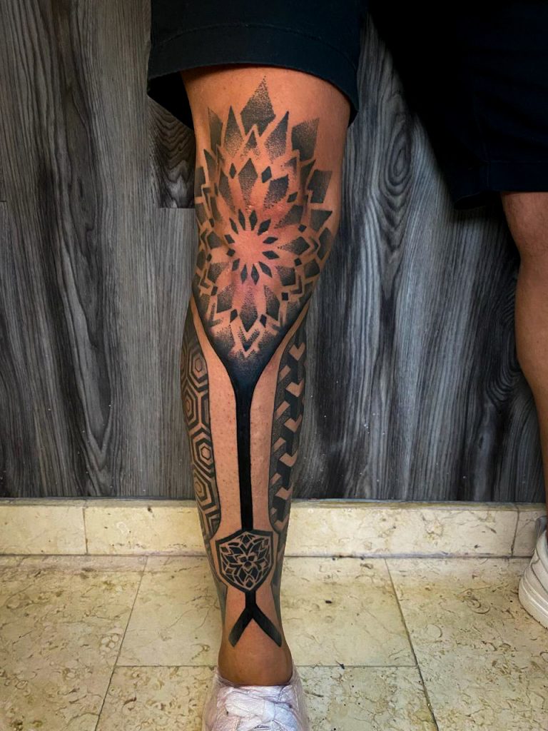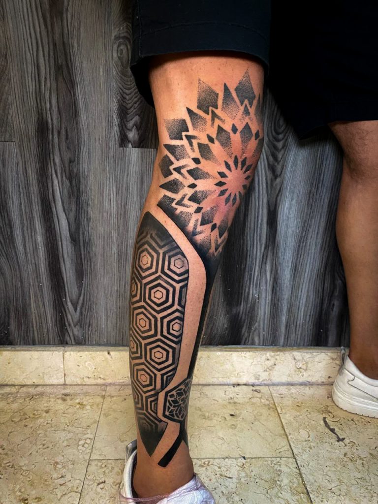 Dentro de mis favoritos está el Neotradicional, fue el primer estilo del que me enamoré, su combinación de líneas y colores explosivos me parecen brutales, y mi otro estilo predilecto es el Dotwork, los diferentes puntos y la textura que se puede lograr considero que es única, al nivel de alcanzar piezas realistas a base de pequeños puntos, que combinada con un poco de geometría creo que es la dupla perfecta (y debe ser perfecta ya que es geometría jeje).