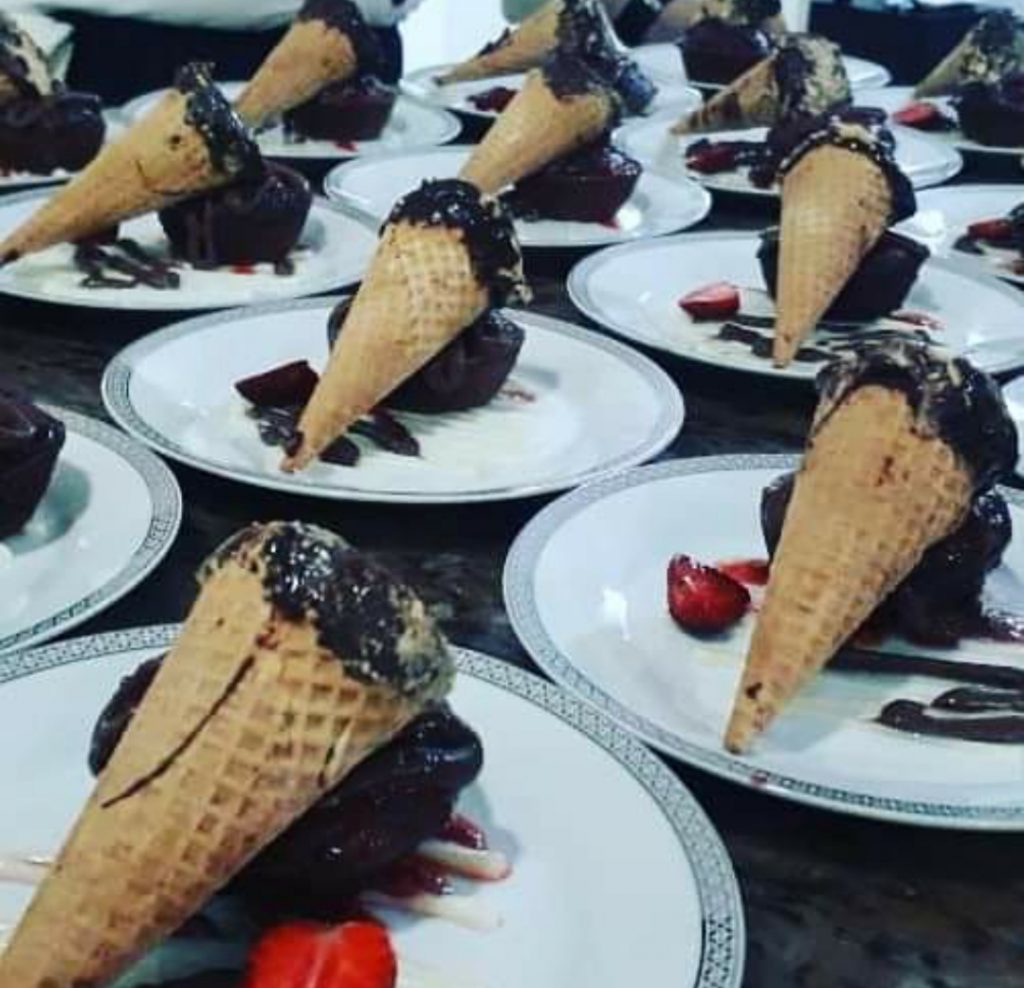 Esto es planificación, planificación y más planificación, porque complacer los paladares de un grupo generalmente heterogéneo es complicado, ya que la gente que va a un restaurant pide a la carta y pide lo que quiera, es un trabajo de mediación entre los anfitriones y la oferta que nosotros ofrecemos, tomando en consideración siempre tener una comunicación directa sobre cantidad de asistentes, locación, duración del evento, instalaciones de la cocina, lo cual es muy importante para trasladar mi cocina a una cocina ajena para poder manejar los tiempos de refrigeración, reconstituir los platos que ya se llevan elaborados y todo salga al pelo. Yo me encargo al trabajar en catering desde el montaje de la mesa, cuando son grupos pequeños el trato personalizado dando charlas y explicación de qué es lo que están consumiendo y degustando en cada uno de los platos, además de tener un buen equipo de apoyo para que todo salgabien; no es decir, yo soy el chef, no, detrás de un chef hay un equipo de trabajo sin el cual no podría salir el pedido, porque hasta una ración de tequeños fritos requiere su arte.