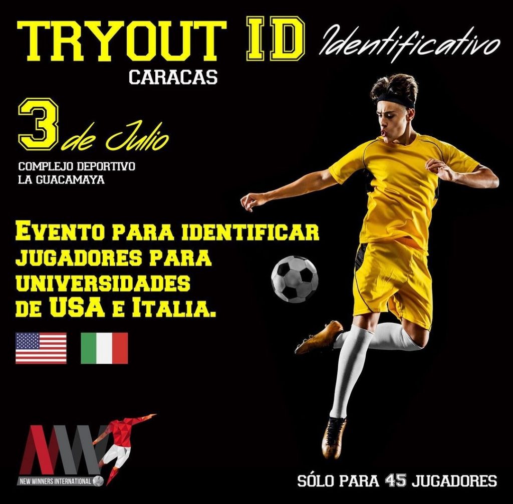 Con el ideal de seguir trabajando por encontrar futbolistas con talentos y mostrar su calidad fuera de las fronteras venezolanas, New Winners International abre el abanico de oportunidades y el próximo 3 de julio realizará en Caracas un tryout identificativo para evaluar el desempeño de los jóvenes que deseen cursar estudios universitarios en Estados Unidos o Italia y optar a una beca deportiva.