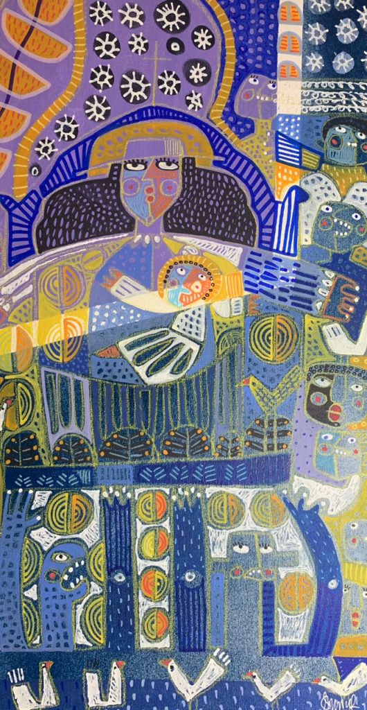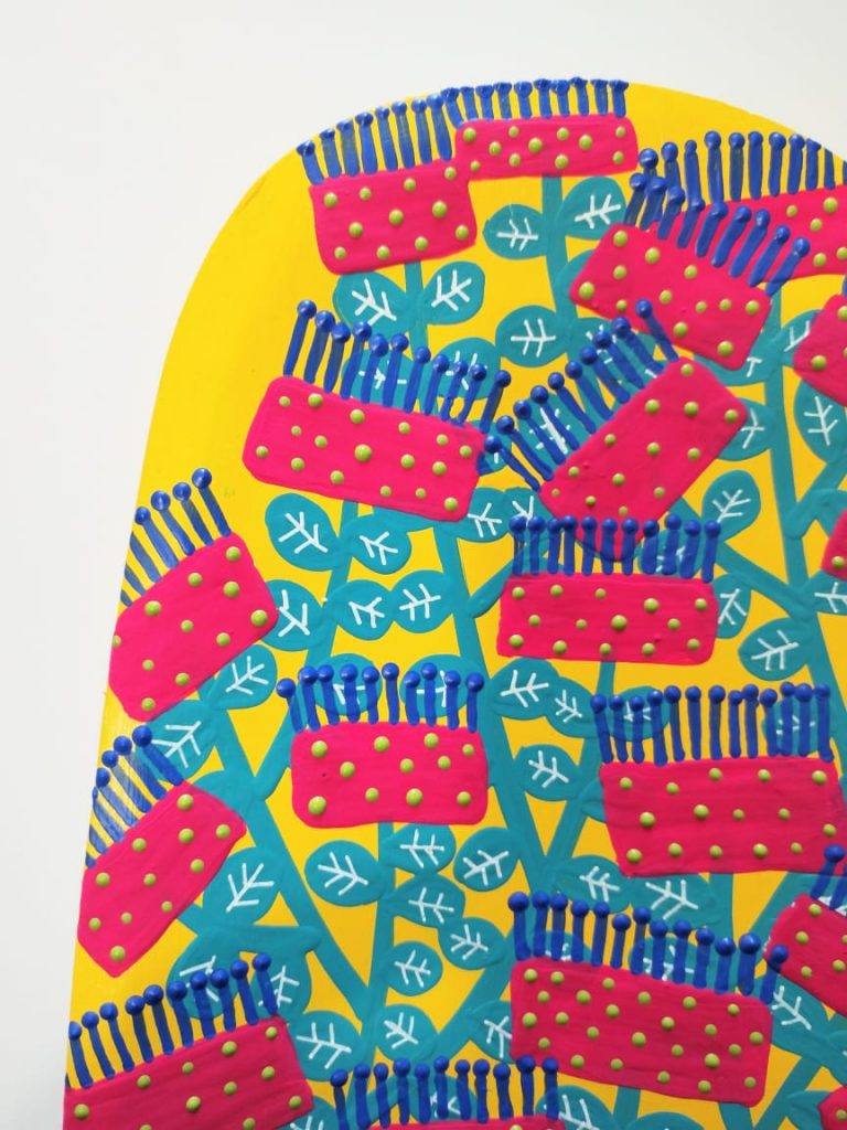 Hemos seleccionado seis artistas que representan la diversidad de expresiones, técnicas y materiales que caracterizan nuestra propuesta como galería de arte: Flor María Pérez que nos presenta una serie de bateas multicolores con los diseños de sus “Jardines Mágicos”; la reconocida ceramista Aída Gruebler que en esta oportunidad tendrá juegos de copas con sus bases divertidas; Omaira Gutiérrez nos llenará de su color zuliano con gallos y pinturas; Amine Joseph nos contagiará con su religiosidad en diseños muy contemporáneos; Yaritza Molina nos trae lo nuevo en su técnica de bordado sobre taparas que le ha valido el reconocimiento internacional y Los Arqss presentan su versión de las meninas de Velásquez pero en su formato grupal.