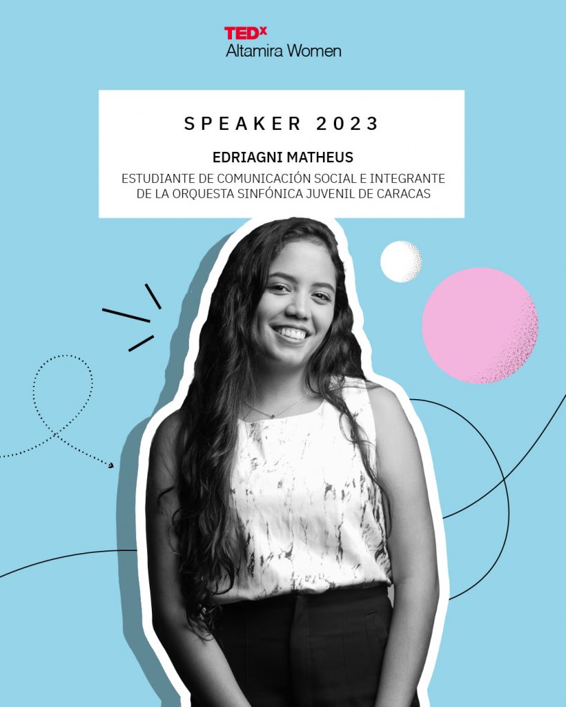 El tema central del evento es “Posibilidades” donde Laura Chimaras, poeta y escritora; Ingrid Serrano Duque, actriz, comunicadora, mentora y actriz; María Victoria Díaz, ingeniera electrónica y CEO del Laboratorio de Innovación Digital; Andrea Hernández, fotógrafa y periodista; Alva Meléndez, directora de mercadeo de Mondelēz Venezuela y Edriagni Matheus, estudiante de comunicación social e integrante de la Orquesta Sinfónica Juvenil de Caracas son las speakers de la edición 2023.
