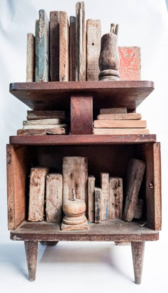 “La madera fragmentada de mobiliarios y arquitecturas circundantes, representa una impronta puntual, ejercicios escultóricos íntimos, cercanos, que exploran nuevas lecturas, como si fuesen libros o bibliotecas-muebles que acompañan nuestro diario vivir. Los objetos, tal cual son encontrados en la calle, también exigen atención y por ello se abren a nuevos espacios de contemplación, de recolección y de archivo. Se hacen narrativa de índole social, como si se tratase de lienzos pictóricos, como esas mantas de vendedores ambulantes que bordean nuestra urbe caraqueña. Son objetos que desde la orilla evocan memorias y retratos de la vida que representan. Nace entonces el objeto-cuadro, como una reivindicación de aquella pintura que se desvanece y se pierde. La huella dactilar, antropometría indeleble, eco de nuestras propias libertades.Y el frottage de nuestras realidades sociales, expresión de un país que nos exige más compromiso y entrega”.