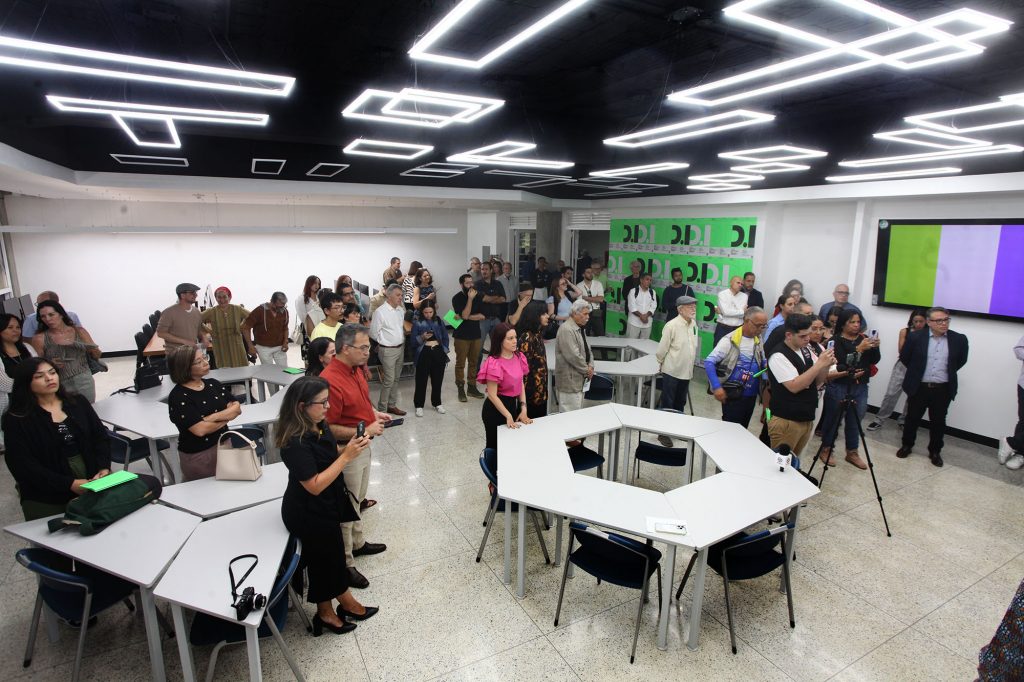 El equipamiento incluye 20 computadoras, cuatro de ellas de pantalla táctil; mobiliario modular adaptable; mesas de trabajo para taller; una barra de trabajo y lectura individual, graderías tipo coworking para trabajo grupal y luces adaptables.