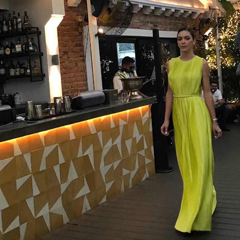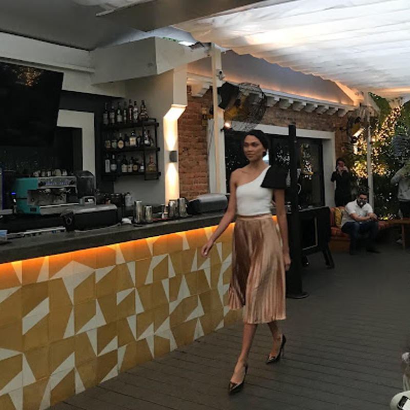 Por medio de esto se ha inspirado y ha creado su marca, Maya. Actualmente con la crisis sanitaria que se sigue viviendo a nivel mundial, la moda está en un proceso de cambio y revisión constantemente. Sin embargo, la venezolana creó piezas versátiles ideales tanto para el día como para la noche. Este es un detalle fundamental para la mujer venezolana que vive una rutina muy agitada. Parte de la decoración del lugar era del propio restaurante, no obstante había una gran M en el medio de la pasarela haciendo referencia a Maya. Esto fue realizado también por Maydeliana Díaz quien tiene un emprendimiento de flores llamado Bella Roses.