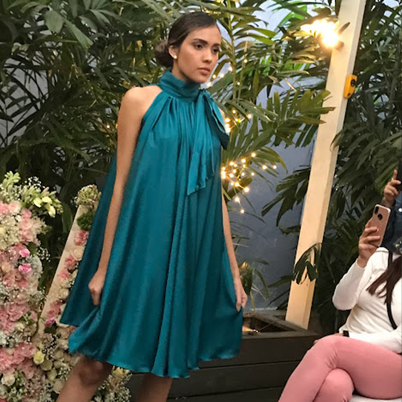 La colección cuenta con una serie de prendas distintas entre sí pero con un hilo conductor, la elegancia. Los bodys son sutiles y crean una silueta perfecta, las faldas plisadas y acampanadas son ideales para cualquier ocasión así como los pantalones palazzo. Los vestidos son los protagonistas de esta cápsula porque no requieren de mucho esfuerzo para lucir bien, simplemente el color y el textil hacen el trabajo completo. Los escotes son medidos, clásicos y sutiles. Lo mejor de todo lo que pudimos apreciar fue que estas prendas pueden combinarse entre sí jugando con los colores y las texturas. Si bien los vestidos son prendas únicas, con accesorios y complementos diferentes son ideales para distintos eventos.