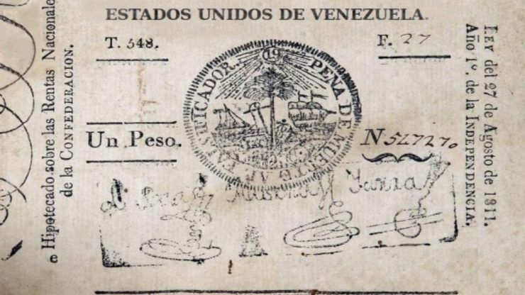 En 1811 el nuevo Gobierno de Venezuela, autorizó la primera emisión del peso venezolano, siendo estos los primeros billetes