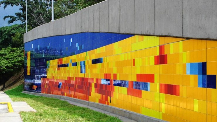 El Jardín lumínico se aprecia cuando se maneja por la autopista Prados del Este. La obra es un mural de baldosas con catorce tonos diferentes
