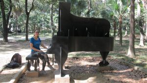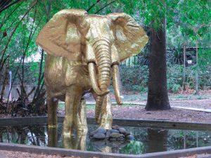 Nuestro Tercer objetivo es capturar los tesoros escondidos dentro del Parque Los Caobos, Teresa de la Parra nos da la bienvenida, creada por Carmen Cecilia Caballero de Blanch y a mano izquierda la réplica de Efebo de Maratón nos invita a entrar al bello bosque, en medio de la expedición un majestuoso elefante dorado nos sorprende al refrescarse en un lago y luego nos sentamos a tocar en el piano de cola, solo los oídos mas afinados son capaces de escuchar esta melodía, seguimos el paseo cantando.